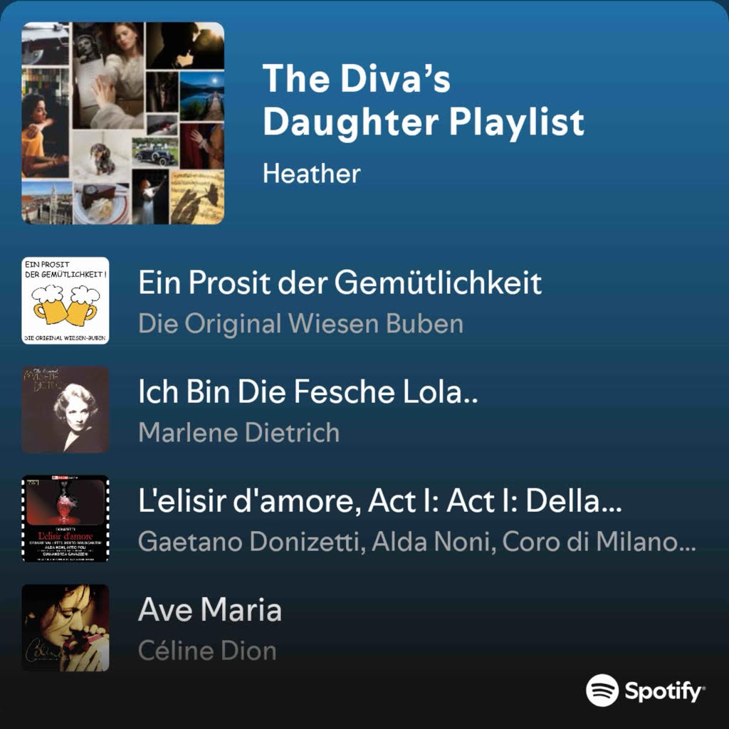 Wishing you could hear Angelika emulate the sultry Marlene Dietrich or impress opera aficionados with her melodious voice? THE DIVA’S DAUGHTER playlist is the next best thing! Listen now to hear the various songs sung or mentioned throughout the novel, along with others that evoke the book’s era and themes. All songs are listed in chronological order so that you can follow along while reading.